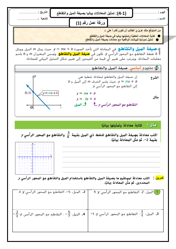 أوراق عمل متنوعة في الرياضيات المتكاملة للصف التاسع الفصل الاول