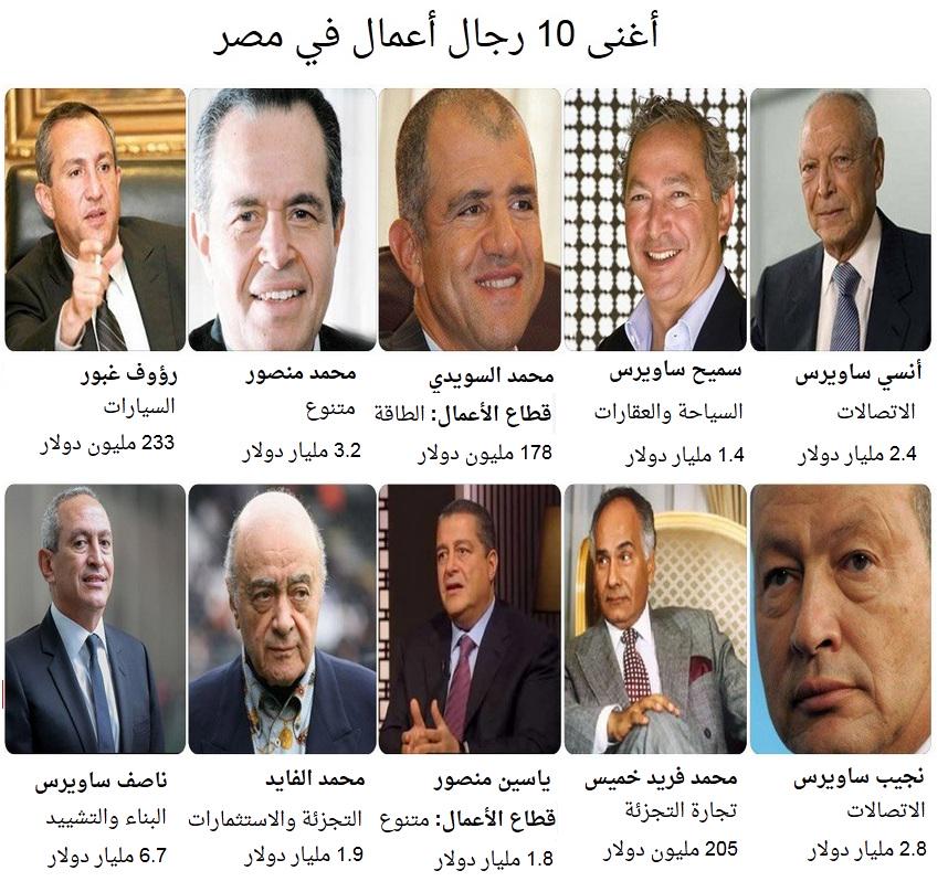 محمد السويدي. 2 مليار دولار مصر. يوجد في مصر أكثر من 12 ملياردير و بعضهم مشهور جدا و أليكم أغني 5 رجال في مصر مثل ناصف ساويرس قطاع الأعمال. تم تحديث المقال لعام ٢٠١٥ أغنى رجال عمال مصريين في عام ٢٠١٥ نشرت مجلة فوربس المتخصصة في الشئون المالية والإقتصادية قائمة بأغني الرجال في العالم وظهر إسم مصر حوالي 13 مرة وتضمنت عائلات ساويرس ومنصور وكان هناك سته من.