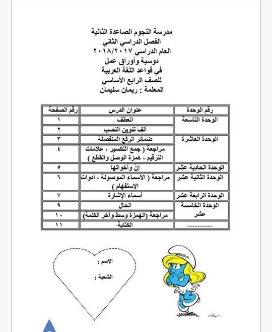 ملف Word دوسية قواعد اللغة العربية للصف الرابع الفصل الثاني منتديات صقر الجنوب