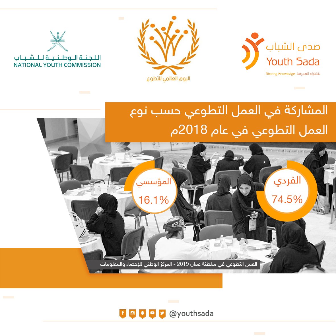 صدى الشباب On Twitter بلغت نسبة المشاركين في العمل التطوعي الفردي حسب بيانات المركز الوطني للإحصاء في عام 2018 حوالي 74 5 بينما بلغ العمل التطوعي المؤسسي حوالي 16 1 يوم التطوع العالمي صدى الشباب Https T Co Xh5vggg5yo